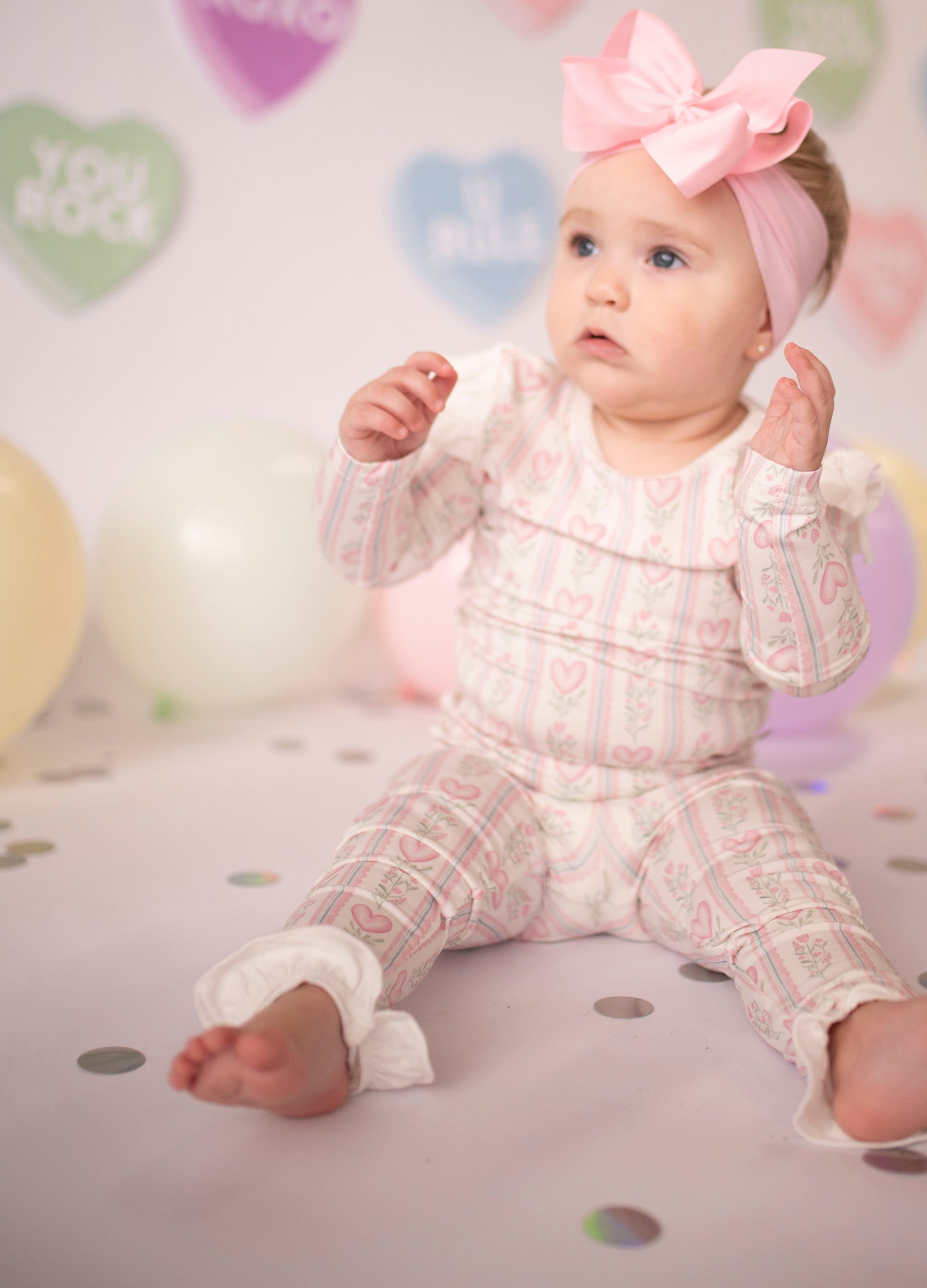 Girls Floral Heart Ruffle Loungewear Set