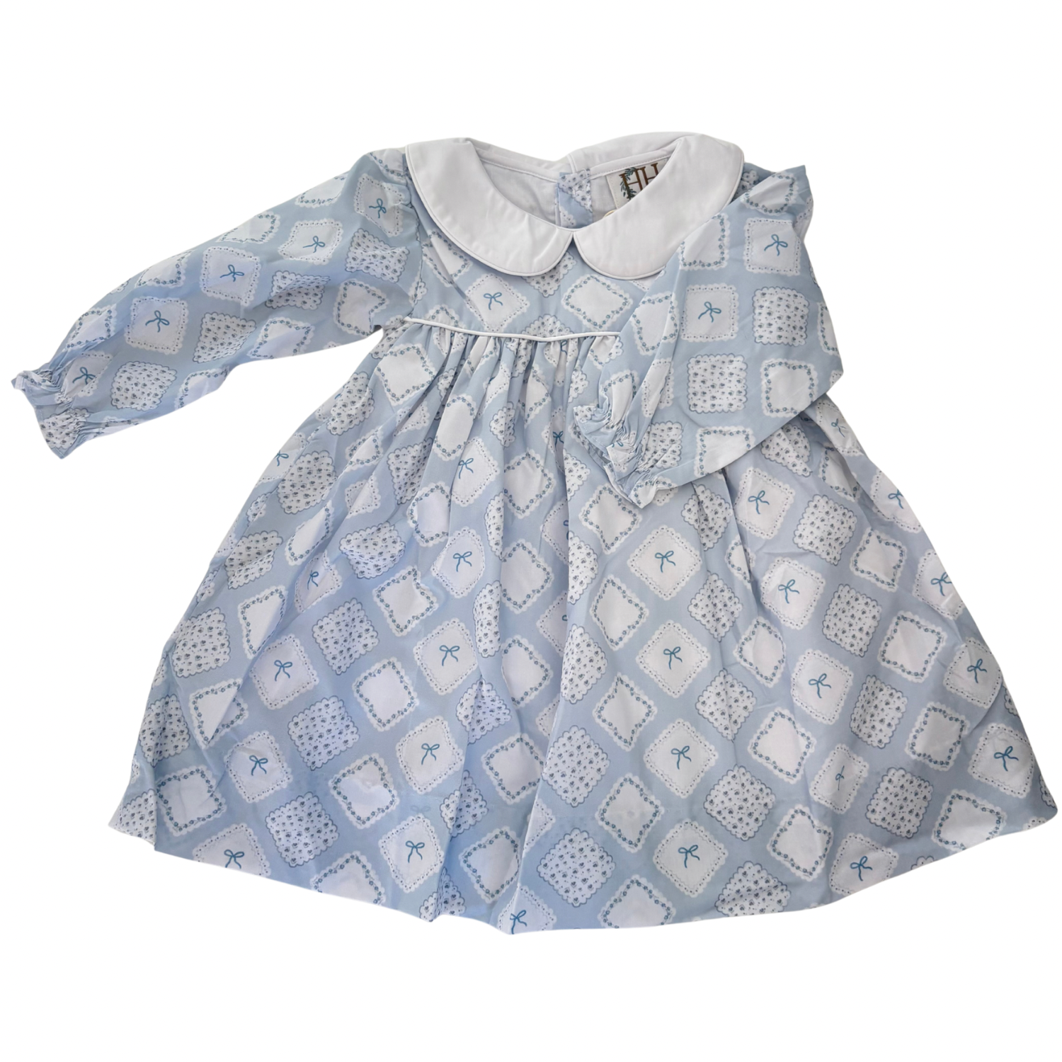Girls Quilted Bow Patch Long Sleeve Dress
