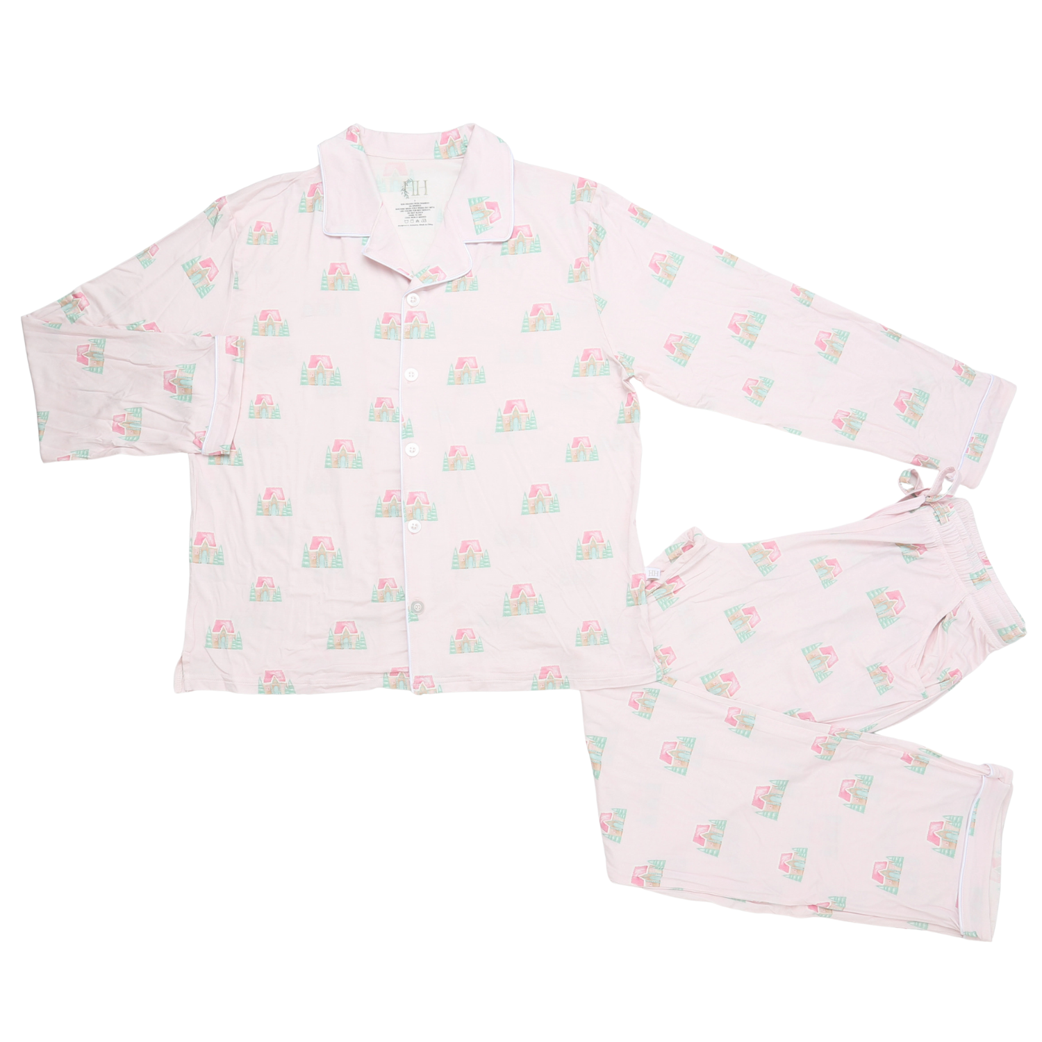 Womens Gingerbread Cottage Button Down Loungewear Set