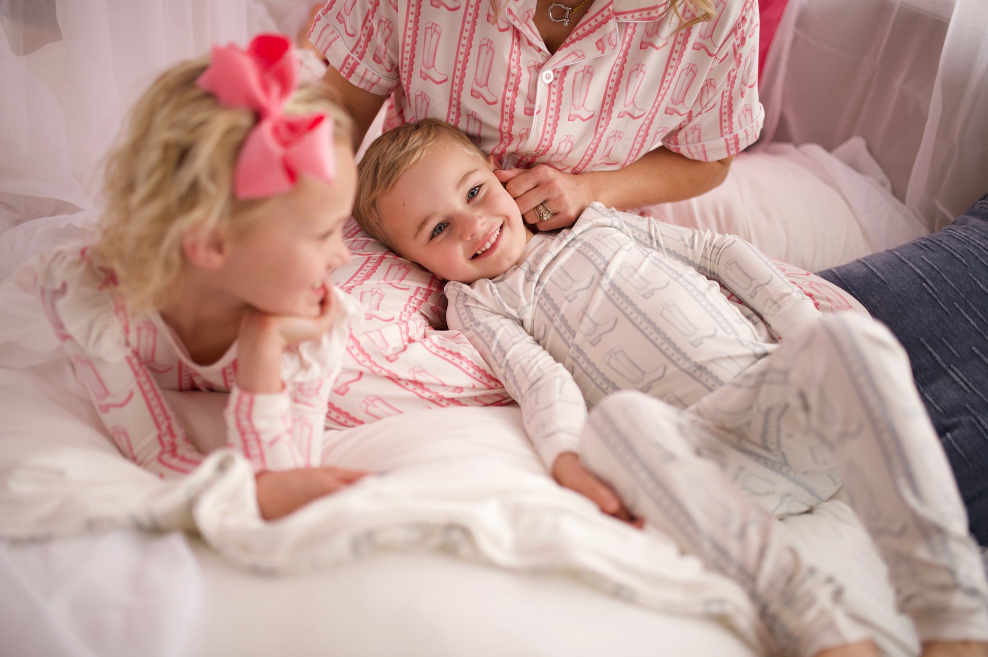 Womens Pink Heart Boot Button Down Loungewear Set